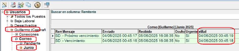 En esta imagen, en la columna “eMail” aparece la fecha y hora en que se envió ese mensaje por email.
