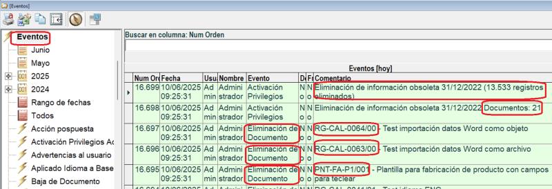 Lo que se ha eliminado, en relación a la fecha de referencia que se indicase al iniciar el borrado, son: