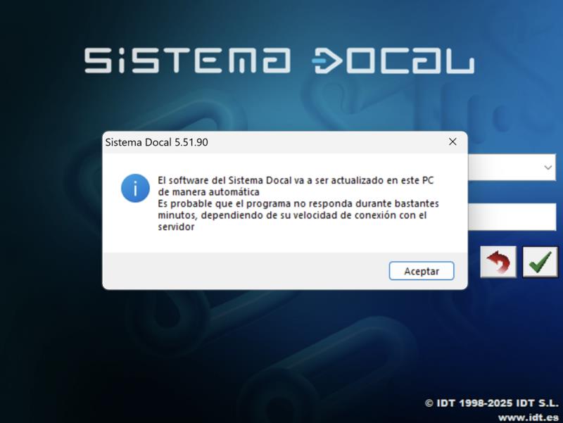 A partir de este momento, se puede iniciar sesión en Docal normalmente tecleando el correspondiente usuario y contraseña.