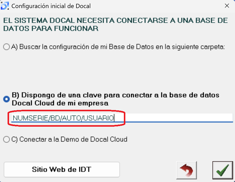 Docal Cloud gestionada por IDT. Para otras situaciones, consultar