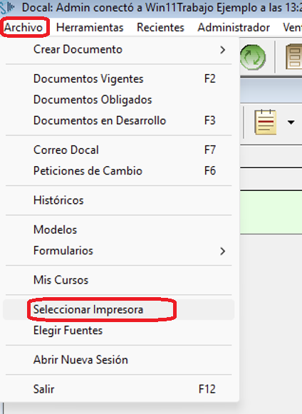 1) Ir al menú Archivo / Seleccionar impresora...