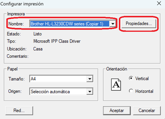 2) Elegir la impresora y pulsar el botón