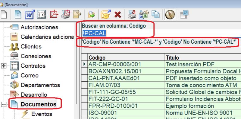 | Listado de documentos vigentes en Docal |