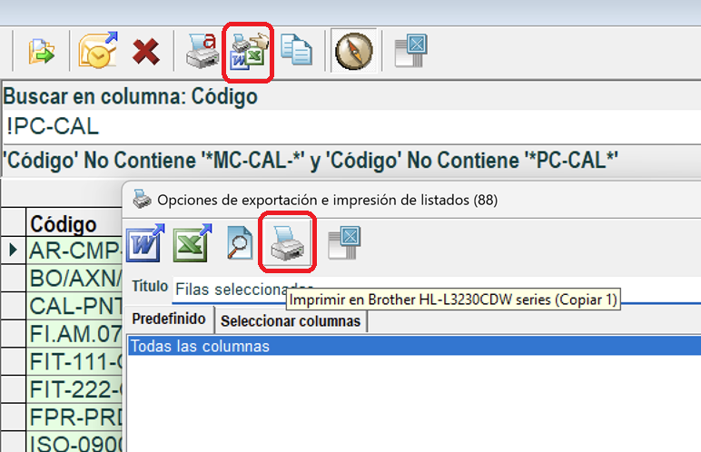 - Exportar el listado a Word o Excel