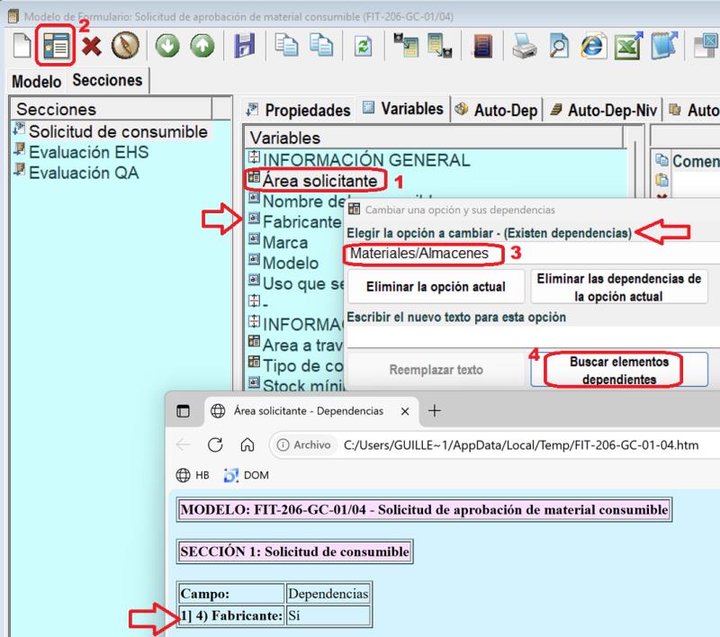 14/07/2025 13:58:26 | Hola, - Para las variables de opciones múltiples, existe el botón “Cambiar una opción y sus dependencias” y para cada opción se puede consultar si hay o no otras variables que dependan de dicha opción: